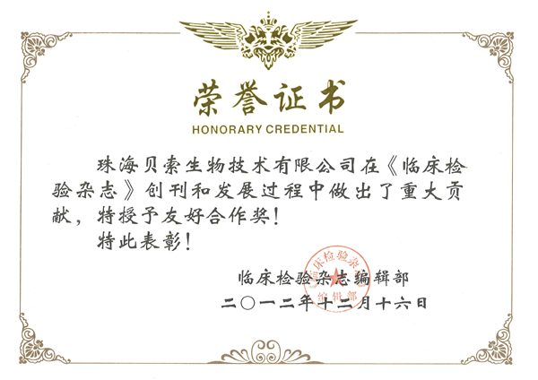 貝索企業(yè)董事長倪堯志,總經(jīng)理陳曉林應(yīng)邀參加了該慶典,與參會(huì)的《臨床檢驗(yàn)雜志》100多名全國編委進(jìn)行了深入交流,并獲得《臨床檢驗(yàn)雜志》頒發(fā)的友好合作獎(jiǎng),獎(jiǎng)勵(lì)貝索企業(yè)為《臨床檢驗(yàn)雜志》創(chuàng)刊和發(fā)展中做出的重大貢獻(xiàn)!