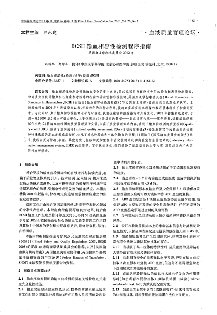 BCSH輸血相容性檢測(cè)程序指南