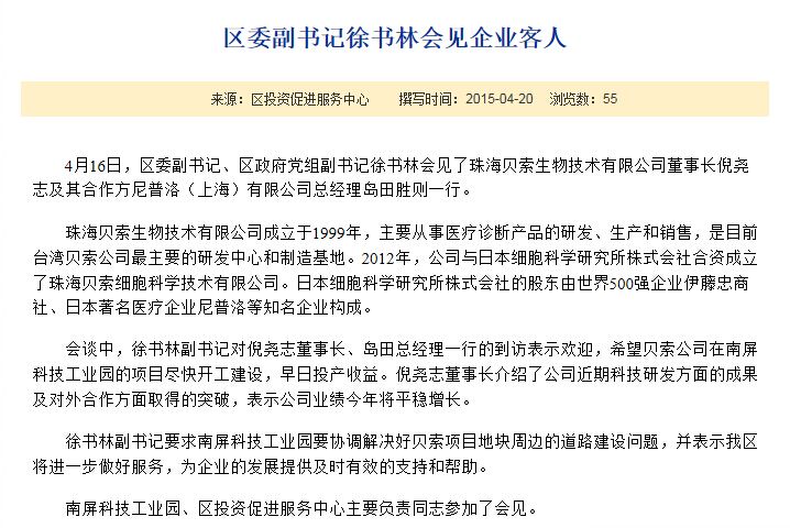 報道-最新消息-貝索企業(yè):珠海貝索生物技術(shù)有限公司、武漢貝索醫(yī)療器械有限公司、武漢金宏生物科技發(fā)展有限責(zé)任公司、珠海貝索細胞科學(xué)技術(shù)有限公司、江蘇貝索生物工程有限公司