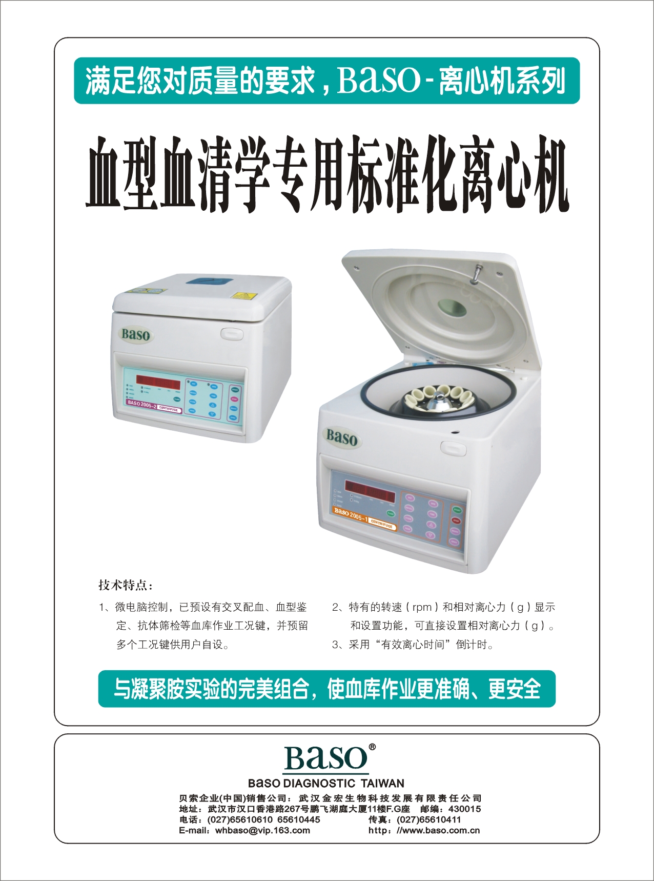 Baso微電腦控制血庫專用離心機是專門為血庫凝聚胺交叉配血試驗的要求設計的。本機與凝聚胺介質(zhì)試劑配套使用,用于交叉配血試驗,血型鑒定及不規(guī)則抗體的篩查。其特點有: