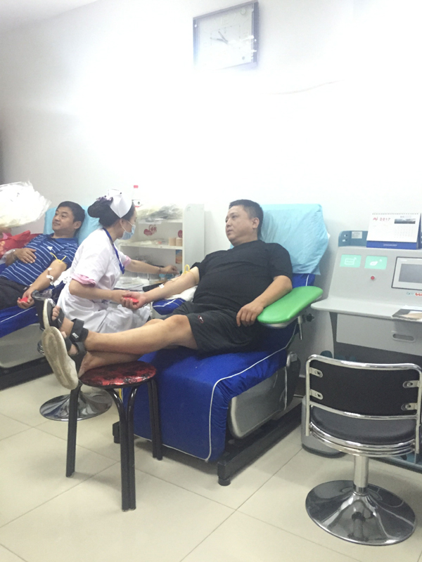 活動(dòng)進(jìn)行的兩個(gè)小時(shí),最終有16名員工通過(guò)體檢,光榮獻(xiàn)血,其中8人捐獻(xiàn)血液400毫升,6人捐獻(xiàn)血液300毫升,2人捐獻(xiàn)血液200毫升,捐獻(xiàn)血液共計(jì)27個(gè)單位,5400毫升。特別值得表?yè)P(yáng)的是,來(lái)自財(cái)務(wù)部的李婭是16位中唯一的女性,盡管身材嬌小,而且是第一次參加獻(xiàn)血,表現(xiàn)得特別勇敢,主動(dòng)要求獻(xiàn)血300ml。來(lái)自工程部的李成林和銷(xiāo)售部的文斌作為無(wú)償獻(xiàn)血的�?�,都是5次奉獻(xiàn)了愛(ài)心。