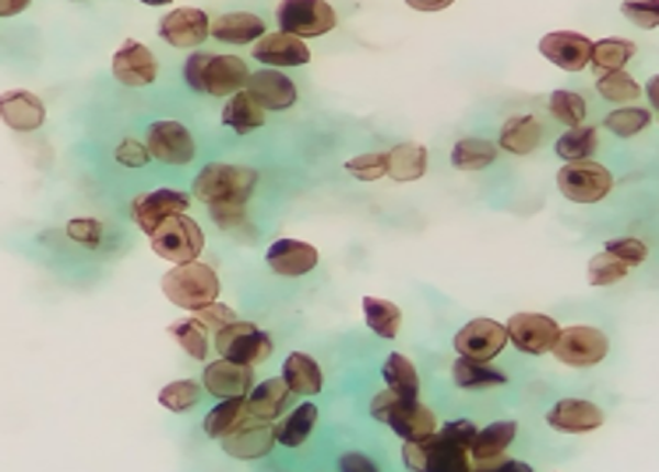 標(biāo)本經(jīng)高碘酸氧化后,使真菌和其他機(jī)會(huì)性生物的細(xì)胞壁內(nèi)的粘多糖暴露出醛基,醛基將六胺銀還原為黑色的金屬銀。硫代硫酸鈉對(duì)已顯色的銀鹽起固定作用,并除去未反應(yīng)的銀離子。