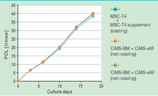 【產(chǎn)品概述】 CiMS系列培養(yǎng)液是專為人類間充質(zhì)干細胞體外無分化增殖培養(yǎng)而研發(fā)的高端產(chǎn)品,包括CiMS-BM基礎(chǔ)培養(yǎng)液和CiMS-sXF培養(yǎng)液添加劑。二者不添加牛血清等存在潛在污染風險的物質(zhì),不含異質(zhì)源性物質(zhì),使用醫(yī)療級蛋白使得使用更安全。另外,培養(yǎng)容器無需黏連蛋白包被,亦可使干細胞貼壁并迅速增殖。無需添加額外的血清及細胞因子,減少了外源因素導致的不穩(wěn)定性,保證臨床中至少5代以內(nèi)保持間充質(zhì)干細胞的特性不分化。并且,經(jīng)實驗證明擴增的間充質(zhì)干細胞有向骨、脂肪及軟骨分化的能力。